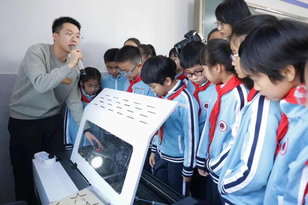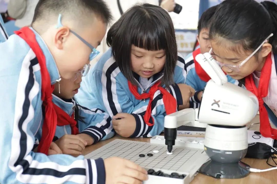 广西柳州一所小学课堂,孩子们正用激光切割机创作,与AI机器人对弈,学习前沿的AI知识和科学技术。