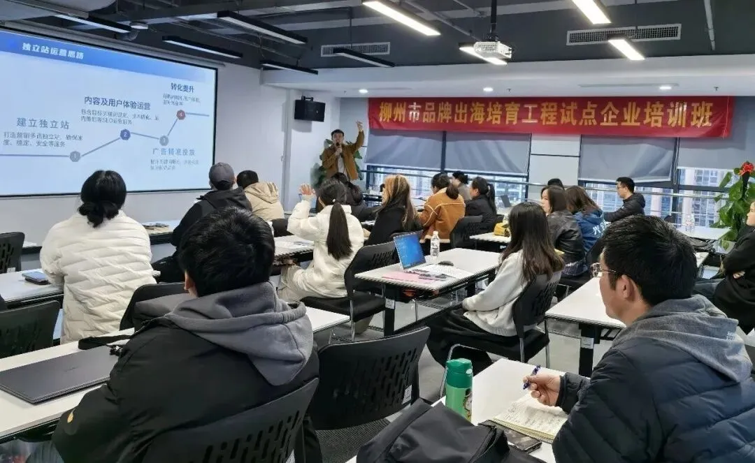 为抢抓跨境电商机遇,迎接2026年对外开放新政,1月30日下午,柳州市品牌出海培育工程试点企业培训班先导课在产业出海服务基地举办,20多家企业代表共同开启品牌出海学习之旅。