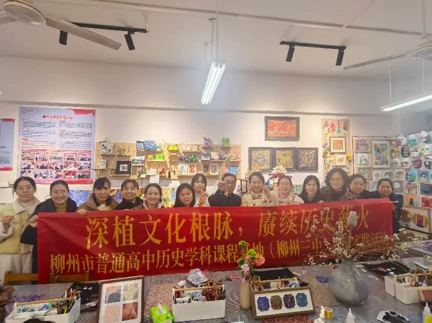 柳州市普通高中历史学科课程基地(柳州市第三中学)联合中山中学开展壮锦文化研学活动为发挥柳州市第三中学作为柳州市普通高中历史学科课程基地的示范引领与辐射作用,深挖柳州本土历史文化资源,推动校际历史教学与文化传承互学互鉴、资源共享,近日,柳州市普通高中历史学科课程基地(柳州市第三中学)携手柳州市中山中学联合开展壮锦文化研学活动。以壮锦这一国家级非物质文化遗产的历史传承为核心,在柳州三中正高级美术教师黄鹏工作室的依托下,两校教师共同参与文化研学与实践体验活动,深入探讨如何将壮锦的丰富历史与文化融入教育教学,以实现地方历史文化的传承与创新。