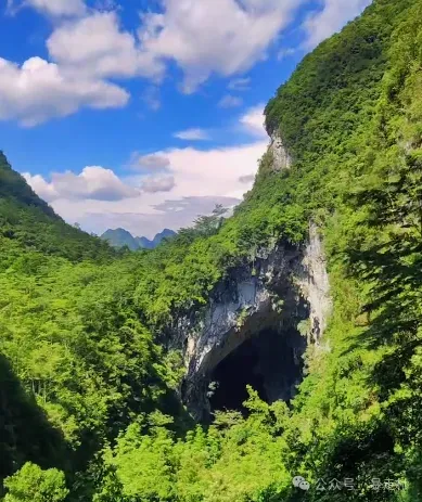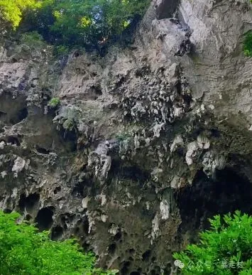 游道上的飞龙穿洞长193米,宽44–62米,高54–100米,洞顶石钟乳发育,造型奇异,似龙爪垂吊,故而得名。