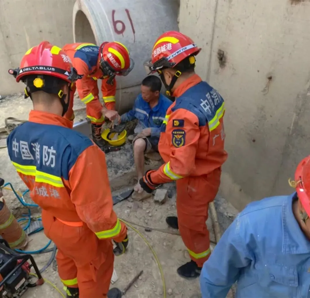 2月3日12时许,防城港市消防救援支队指挥中心接到报警,一名施工人员在地下管道作业时身体被卡。支队迅速调派水上大队深港路站前往处置。