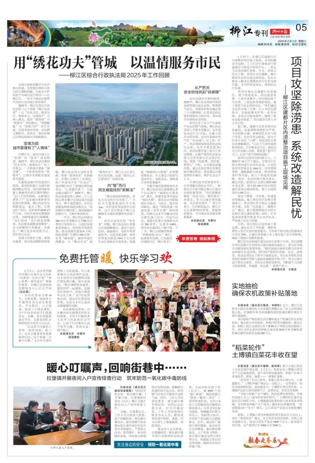 从便民疏导到智慧停车,从环境整治到安全守护,一桩桩民生实事勾勒出柳江区城市治理的新图景。“我们将继续秉持‘执法为民、精管善治’的理念,努力让城市更有温度、生活更加美好。”周立永表示。站在新的起点,柳江区正以更精细的管理、更温情的服务,书写城市高质量发展新篇章。