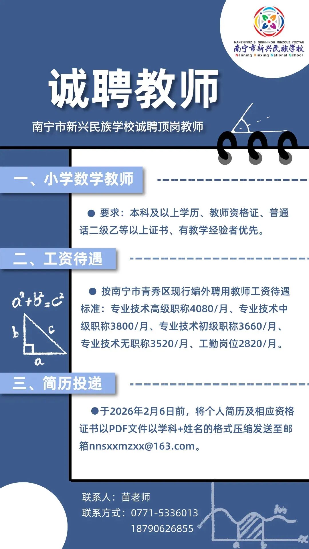 >【南宁教师招聘】2026年南宁市新兴民族学校教师招聘公告