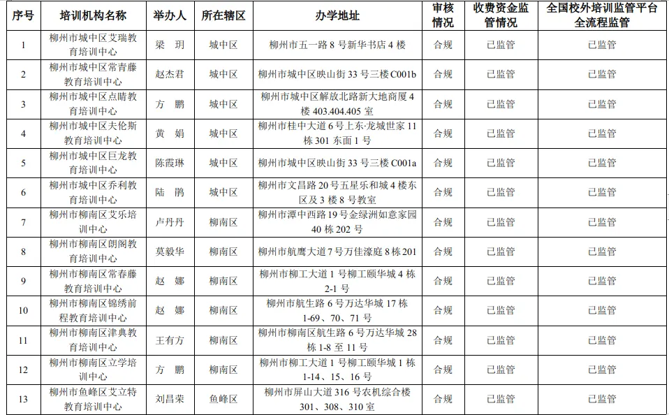 近日,柳州市教育局公布了2026年柳州市第一批面向中小学生学科类校外培训机构“黑白名单”