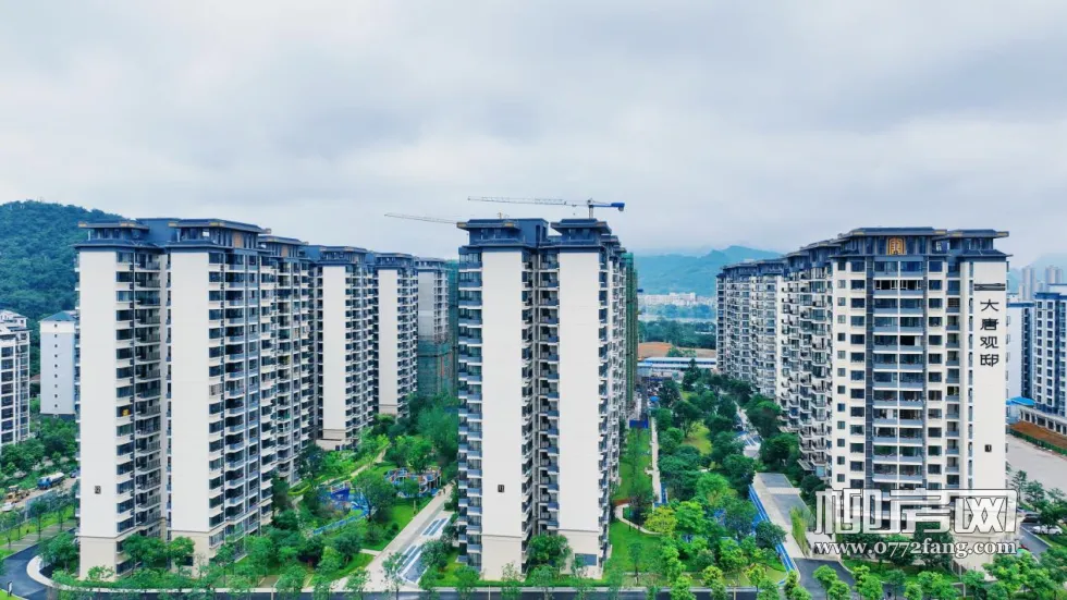 大唐观邸所在地原是三门江刨花板厂,土地业主是柳州三门江置业投资有限公司,大唐地产在2019年收购揽入囊中,分一二期开发,总共1774套房源,截止目前项目一期已实现交房大概866套。