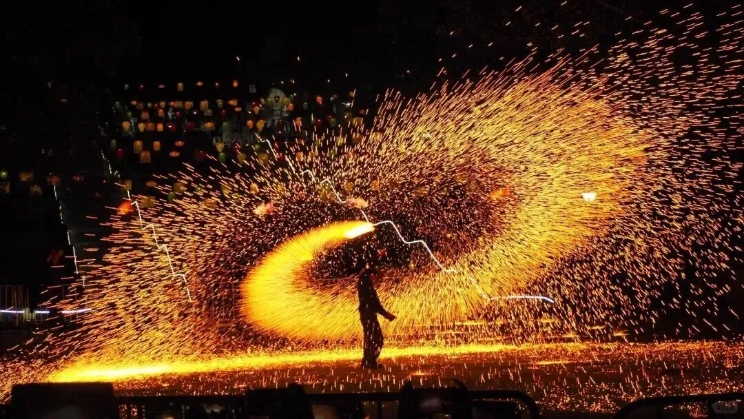 内容:非遗绝技“打铁花”震撼上演!千度铁水泼洒升空,化作漫天星火,璀璨光芒点亮鹿寨的夜空,这是属于中国人的浪漫烟花,一定要和家人朋友一起见证!