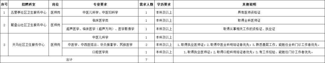 本次招聘编外聘用人员7名,具体见下表: