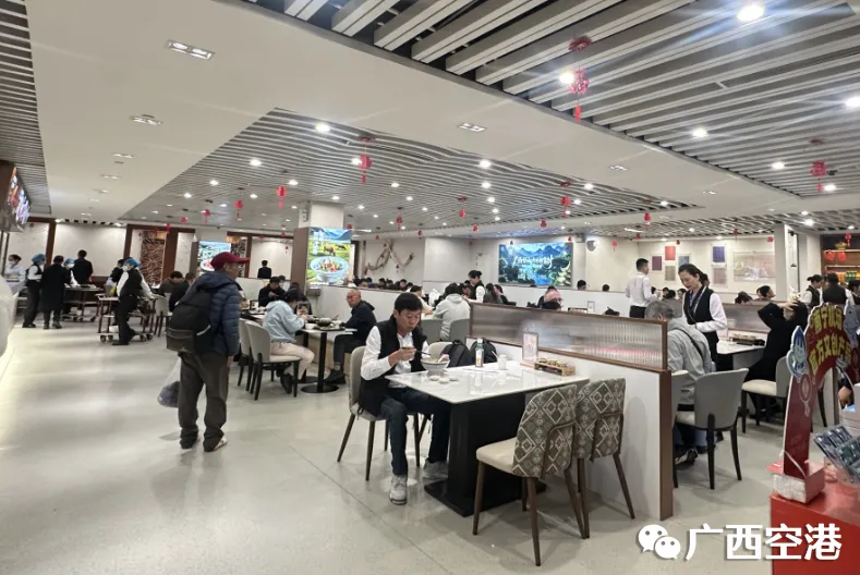 2月4日,南宁机场云上桂味旗舰店新店试业,以壮乡风情、地道风味,给予旅客广西餐食文化体验新场景。