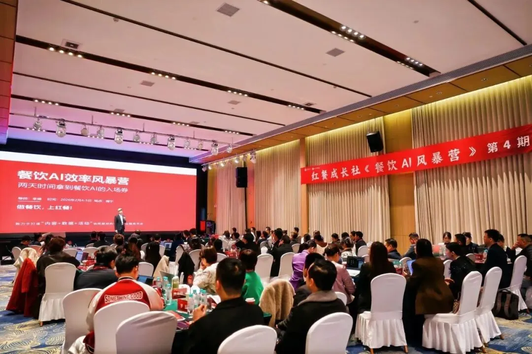 2月4日,一场旨在深度赋能餐饮行业智能升级、提质增效的培训课程——第四期《餐饮AI风暴营》在南宁凯利国际酒店凯宴厅顺利开营。本次课程由红餐首席AI官、红餐成长社联合创始人李棒老师亲授,更特别邀请“产品定位与菜单升级专家”李蔚老师带来《AI赋能营运:智能工牌全案分享》专项内容。