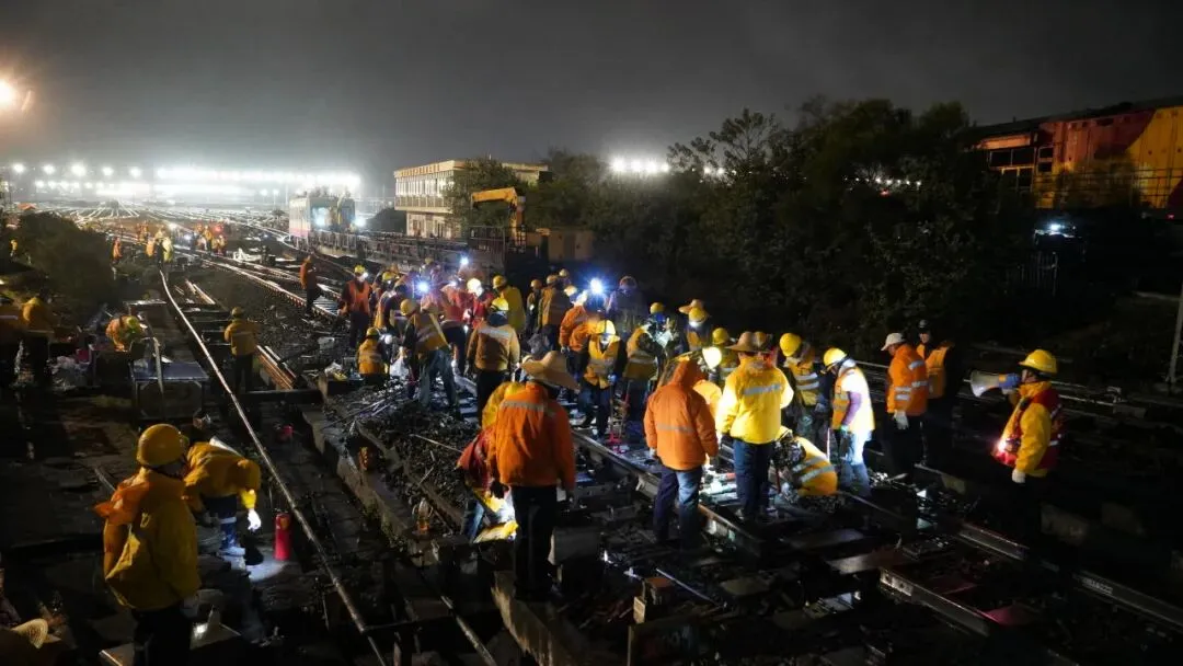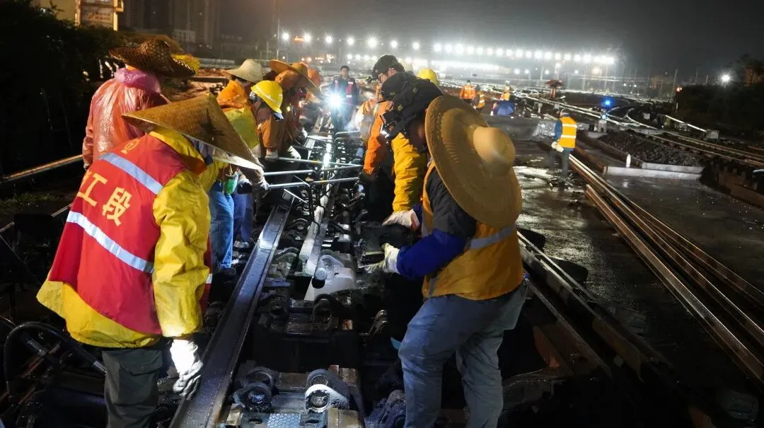 今年年初,柳州工务段锚定“十五五”目标任务,坚决开好局、起好步,联合柳州工务机械段、桂林工务段、桂林高铁基础设施段协同作战,攻坚克难,百余名施工人员以“战时状态”全力攻坚,确保柳州南站集中修换岔、换枕、道岔大部件修、钢轨打磨等工作取得阶段性成效。