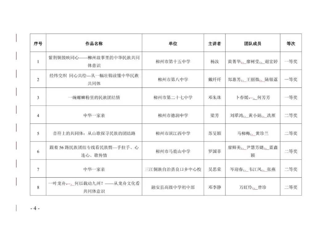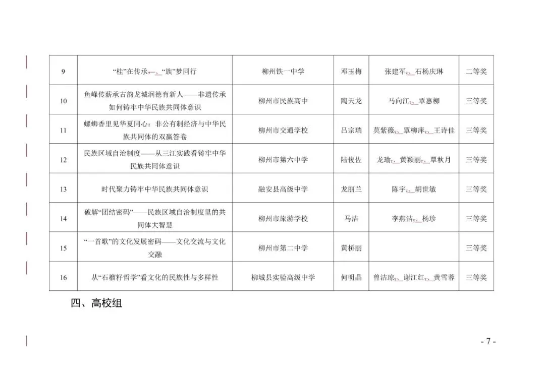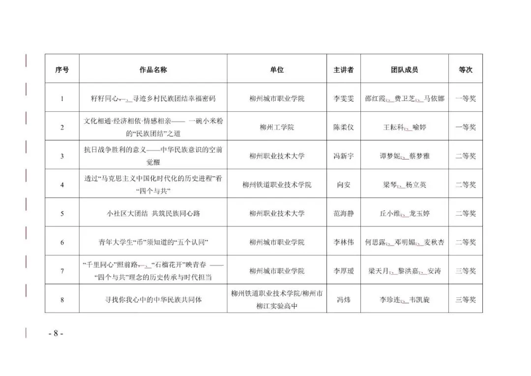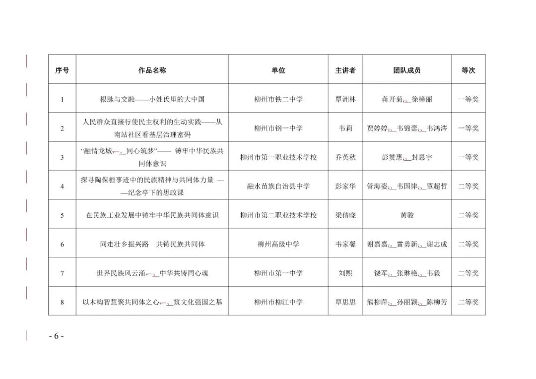 【获奖名单】2025年柳州市大中小学铸牢中华民族共同体意识融入思政课优秀微课评选展示活动拟获奖名单公示