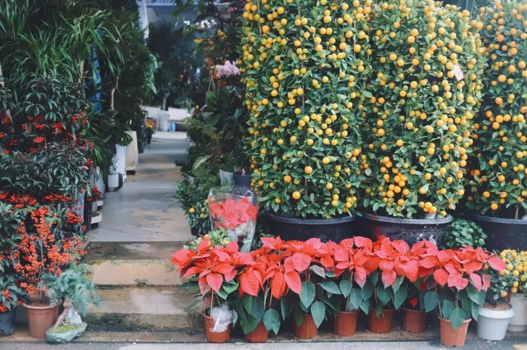 在花市散步,不仅可以欣赏到美丽的花卉和琳琅满目的商品,更能感受到浓浓的年味。