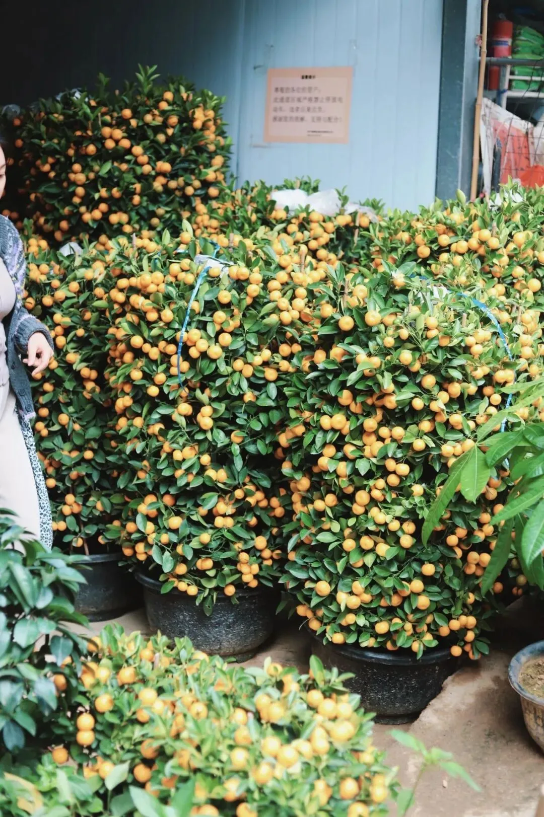 刚踏入广西花鸟交易市场,视线就被一排排“身高”一两米的年桔牢牢锁住。