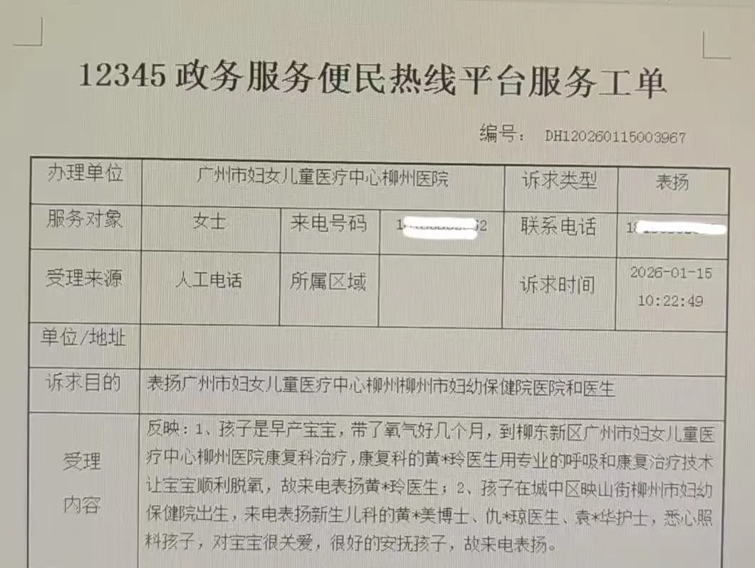 另一位妈妈在12345政务服务热线中讲述了自己的暖心故事:她的早产宝宝曾受支气管肺发育不良困扰,靠氧气度过最艰难的几个月,康复医学科黄秋玲治疗师为其制定专业呼吸康复方案,凭借精准管理与早期干预,帮助宝宝成功脱离氧疗,拥有了自由呼吸、畅快奔跑的未来。