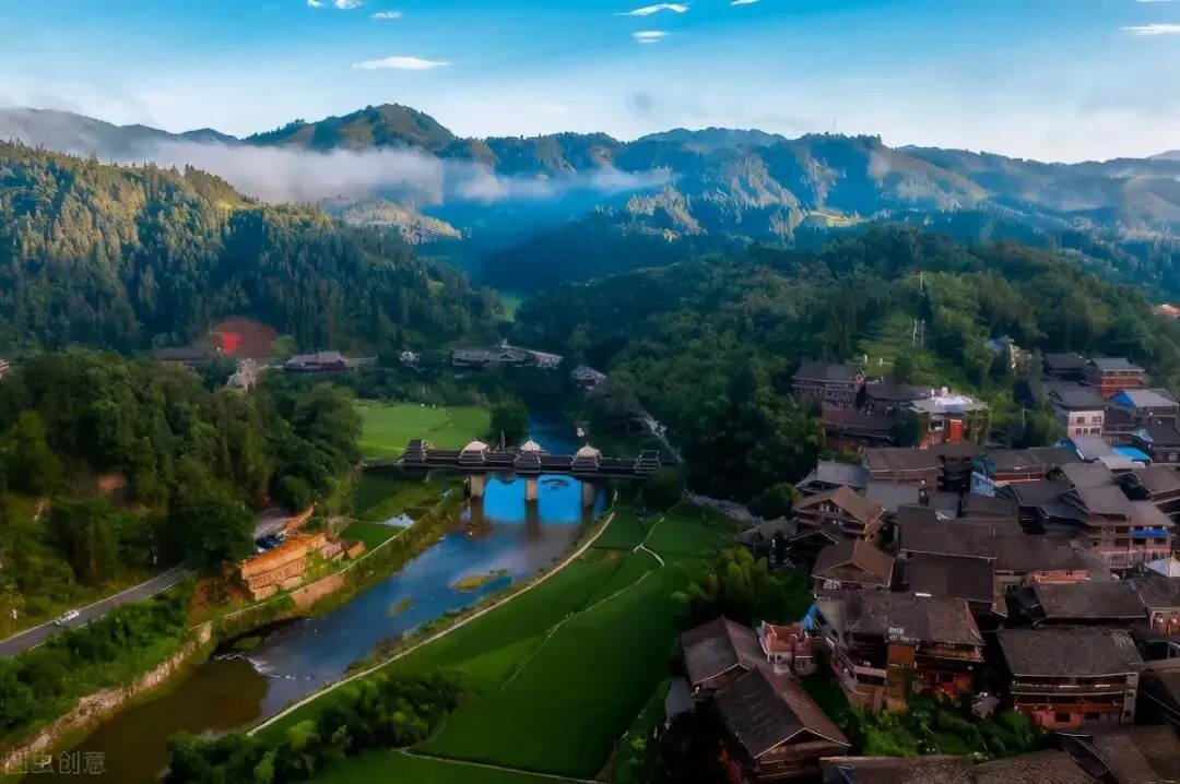 【程阳八寨】:景区拥有2000余座吊脚楼、9座鼓楼及5座风雨桥,构成了中国现存规模最大、保存最完好的侗族木构建筑群落,被誉为“侗族木构建筑生态博物馆”。