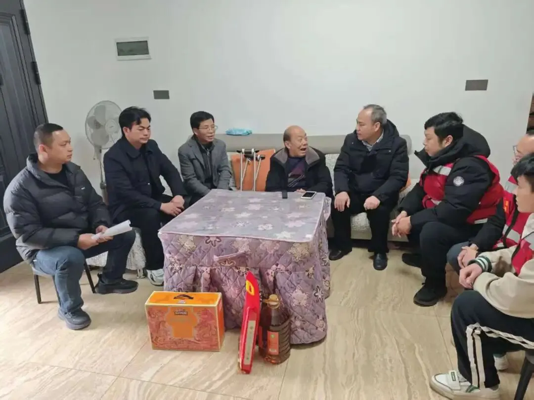 座谈结束后,工作组开展走访慰问。在困难群众家中,甘达淅、杨建平一行与群众促膝长谈,拉家常、问冷暖,详细询问他们的身体状况、生产生活情况、年货筹备进度及家庭收入来源,耐心倾听群众的实际诉求与心声。“天气冷了,要注意防寒保暖,出行一定要注意安全”“有困难及时向村两委和工会组织反映,我们会尽力帮助解决”,工作组一边为群众送上米、油等慰问物资,一边送上暖心叮嘱,鼓励大家坚定发展信心,积极投身生产经营,日子一定会越过越红火。一句句关切的问候、一份份实用的物资,让群众在寒冬中感受到了党和工会组织的温暖。
