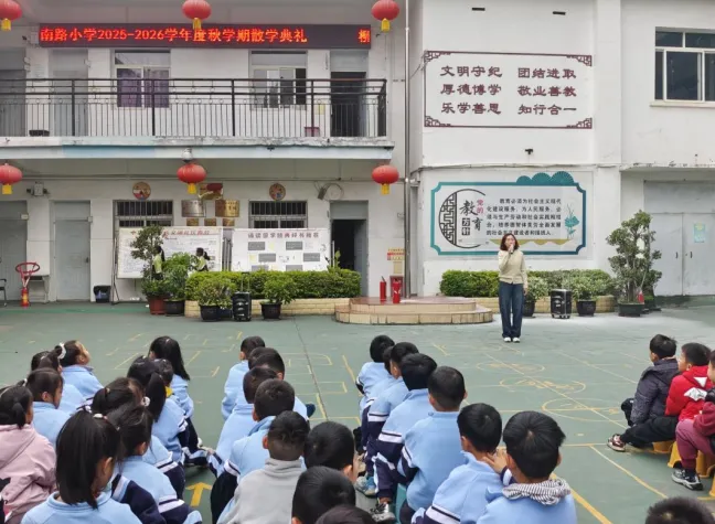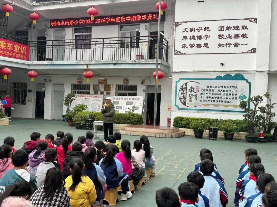 冬阳和煦,腊梅含香。1月30日上午,柳州市水南路小学全体师生齐聚校内操场,隆重举行以“飞马跃新春,寒假踏歌来”为主题的2025年秋季学期散学典礼。本次活动旨在强化假期安全意识,营造喜庆祥和的节日氛围,为本学期画上圆满句号,也为即将到来的寒假与新春注入温暖与力量。
