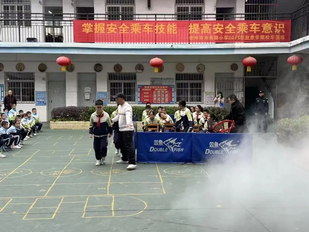 紧接着,校车安全应急演练有序开展。在安全指挥韦红标、阮开盛老师的引导下,师生模拟突发状况下的疏散流程,动作迅速、秩序井然,进一步提升了应对险情的实战能力。演练结束后,韦敏副校长作总结讲话。她充分肯定本次活动组织有序、参与到位,达到了预期效果,同时针对演练细节提出优化建议,强调全体师生须时刻绷紧安全弦,将应急规范融入日常,切实提升校园整体安全防护水平。