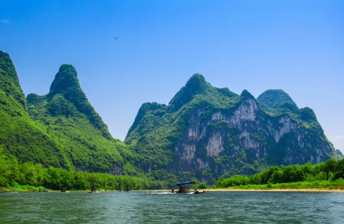 早餐后前往【兴坪古镇、漓江徒步】兴坪,桂林山水之精华,这里有著名的九马画山、黄布倒影、僧伲斗嘴、朝板山、榕潭揽胜、雾绕青螺,这里有两个总统游过的神秘、古朴村落——渔村,这里有被印制在1999年版贰拾元人民币背景图案上的兴坪大河背秀丽风景。