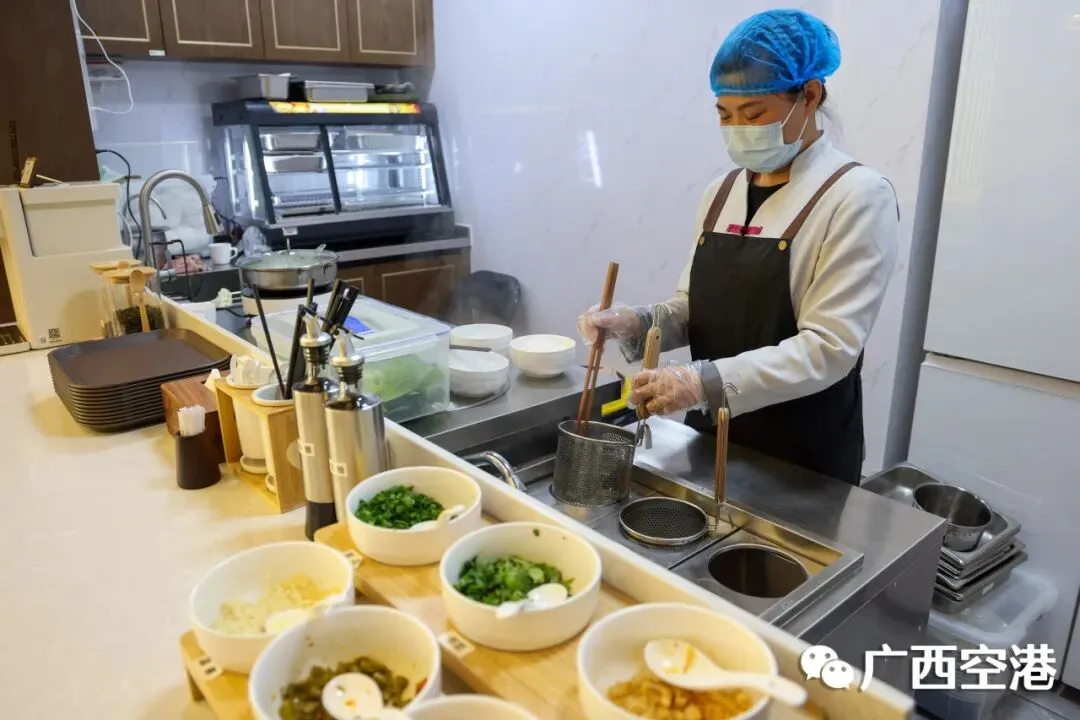 此次早餐服务的推出,是基于对旅客意见的广泛收集与出行需求的深入分析,在餐食设计方面,南宁机场顺旅服务部注重口味多元与营养健康相结合,融合本地餐饮特色与均衡膳食理念。早餐供应包含现煮的广西特色米粉系列,如牛腩粉、老友粉、桂林米粉等,同时提供现蒸包子、全麦面包、纯牛奶等多种选择,兼顾传统与健康偏好,以满足不同旅客的口味需求。