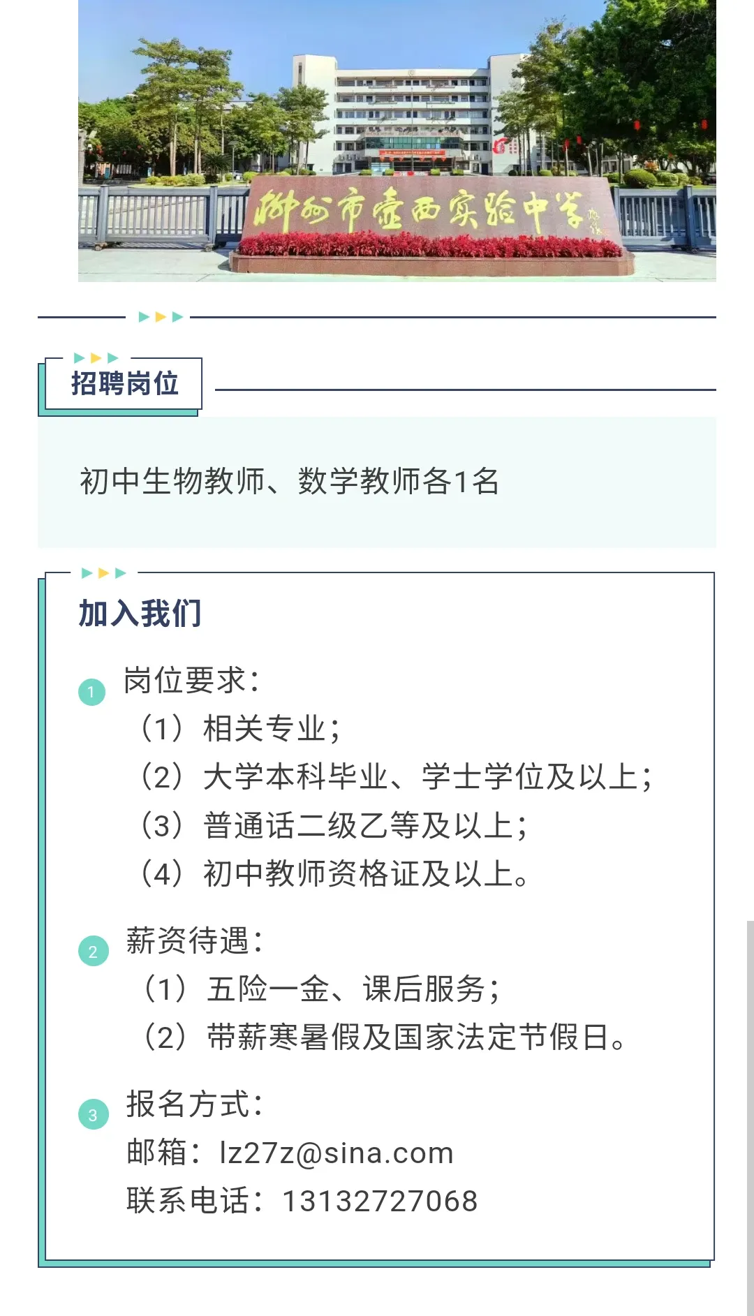 柳州教师招聘:柳州市壶西实验中学招聘