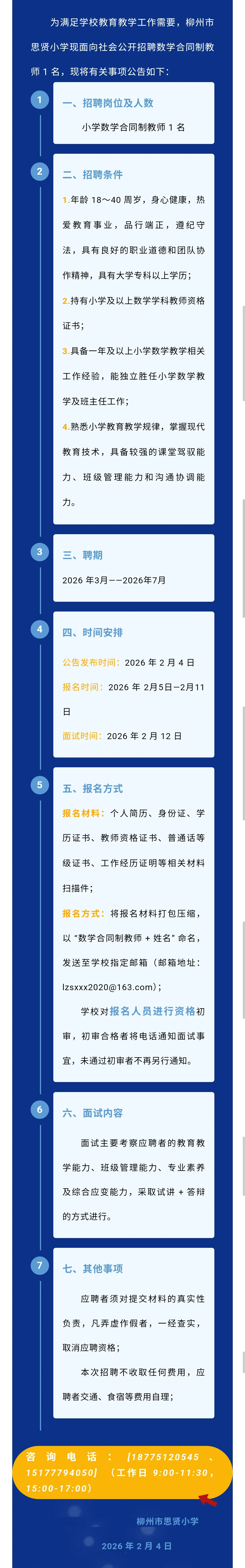 柳州教师招聘:柳州市思贤小学招聘