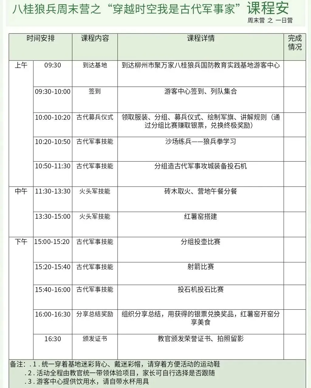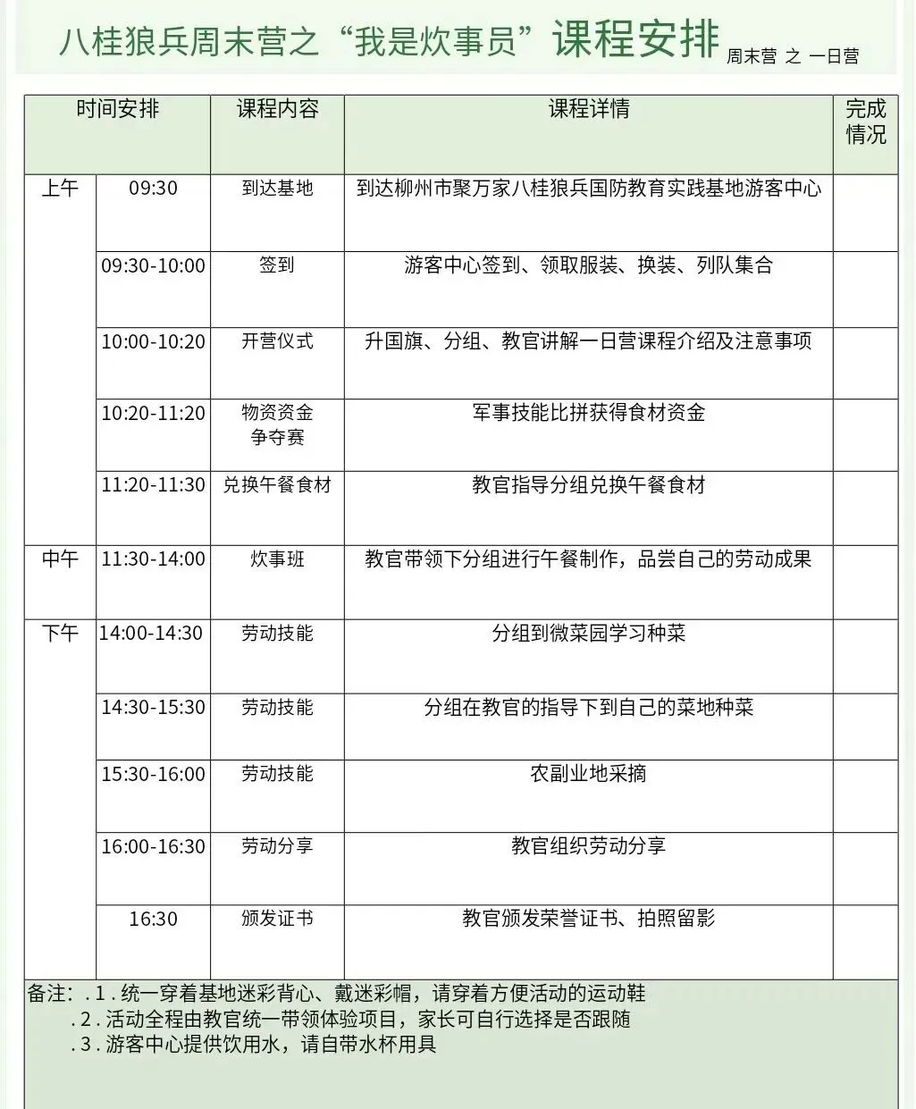 ◆ 具备一定的生活自理能力,身体素质正常,能适应户外活动。