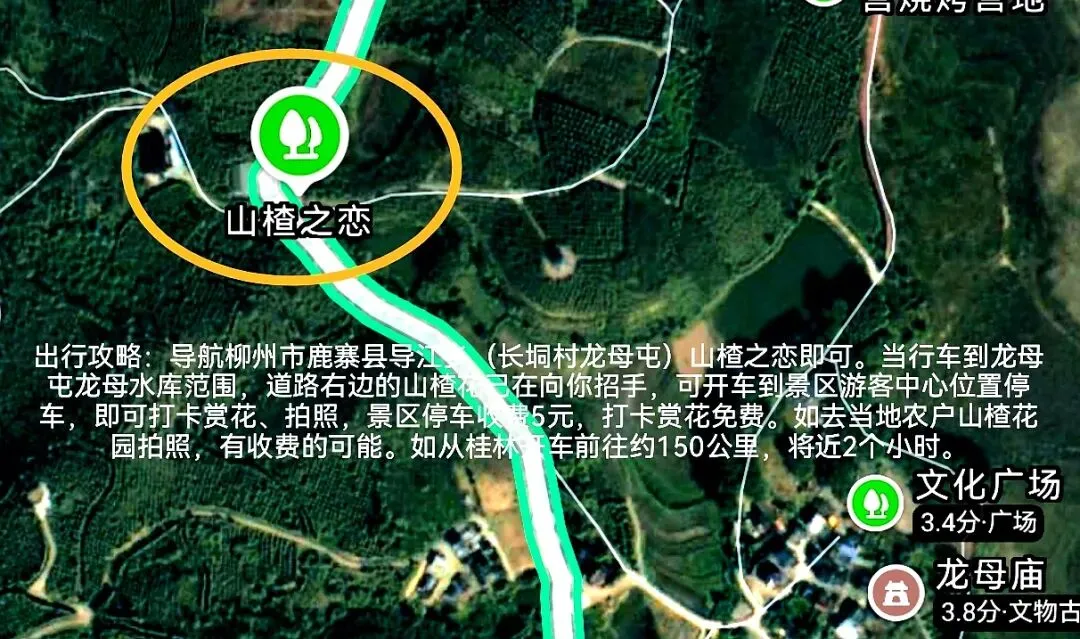 出行攻略:导航柳州市鹿寨县导江乡(长垌村龙母屯)山楂之恋即可。当行车到龙母屯龙母水库范围,道路右边的山楂花已在向你招手,可开车到景区游客中心位置停车,即可打卡赏花、拍照,景区停车收费5元,打卡赏花免费。