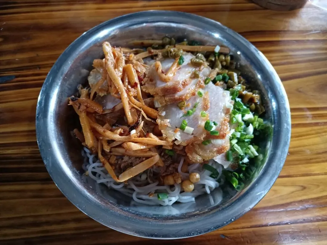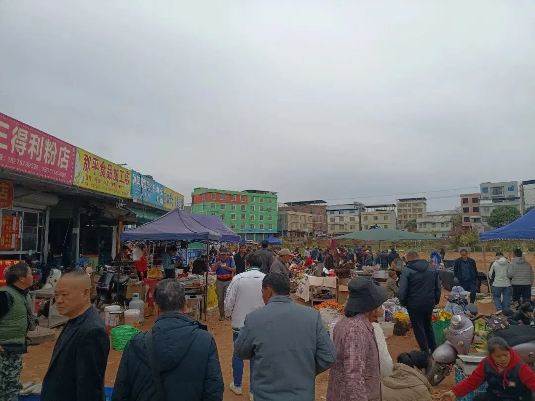 一下车,满满的烟火气就扑面而来!圩日的那马圩能聚个两三万人,附近百济、新江镇等十里八乡的村民,都挑着自家种养、现摘现捞的货来摆摊,人山人海,特别有逛头。全是地道农家土货,散养的青头鸭、南晓鸡,八尺江现捞的野生泥鳅、鲜活河鱼,带着泥土清香的时令瓜果蔬菜,样样都是原生态。还有小猫、小狗、小兔子等各种小动物,广西特有的各种药材等等。除了农副产品,集市外围还有服装、农具、床上用品,价格都亲民,老街坊们都爱来这儿淘货,逛上一圈,保准你买到手软。必嗦那马生榨米粉,酸香开胃超地道