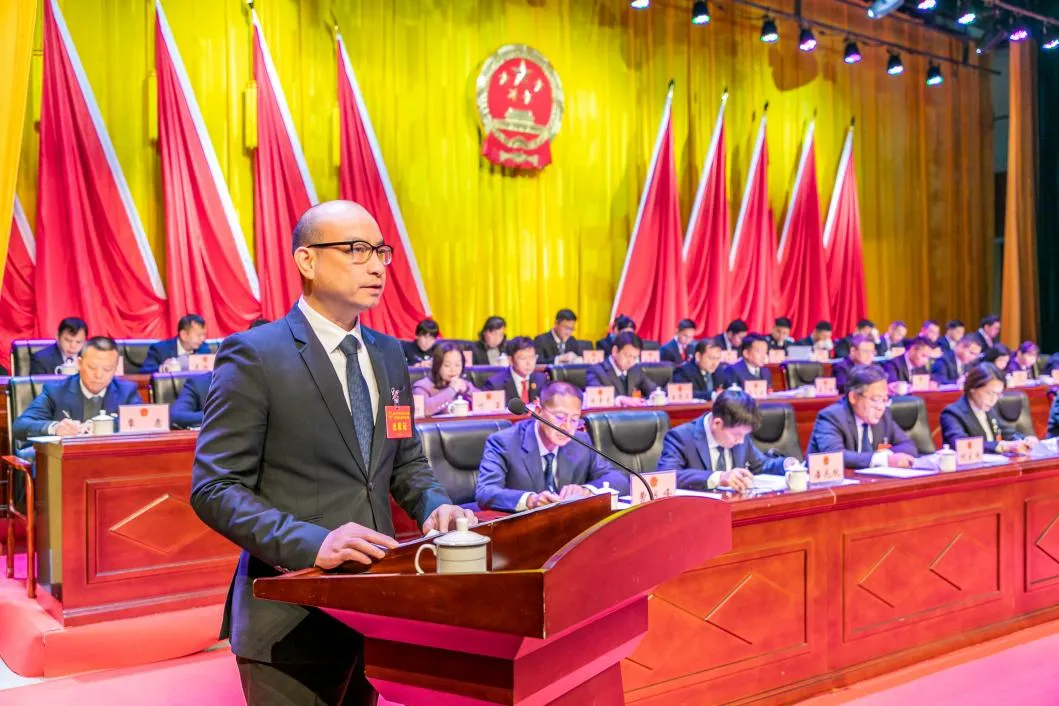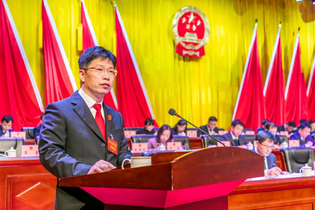 在热烈的掌声中,青秀区人民政府区长黄立基代表城区人民政府作工作报告。报告分为四部分:“十四五”及2025年工作回顾,“十五五”期间的奋斗目标和主要任务,2026年工作安排和全面加强政府自身建设。
