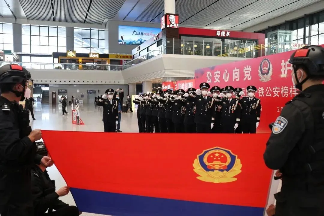 2023年1月10日是第三个中国人民警察节,也是党的二十大召开后的首个中国人民警察节。在节日到来之际,南宁铁路公安局在南宁东站举办了宁铁公安榜样宣传发布活动,向社会大众展示了在战疫情、保安全、护稳定、促发展工作中涌现出的4个集体、7名个人榜样。