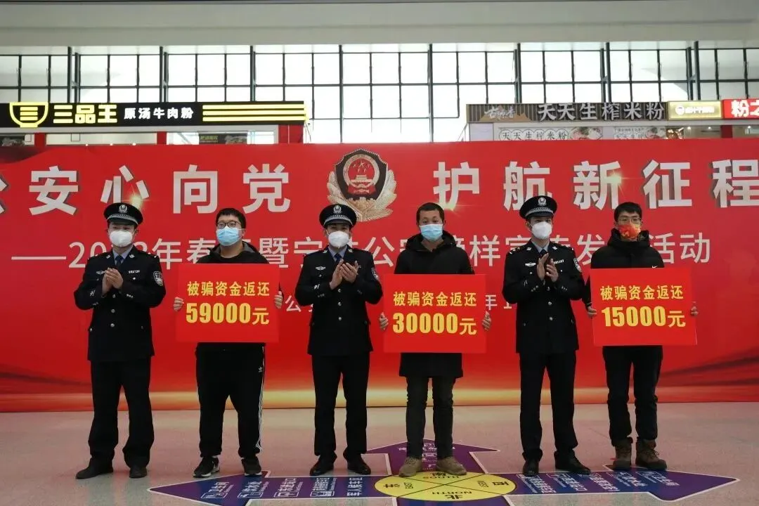 活动当天,南宁铁路公安局南宁公安处举行了电信诈骗涉案资金集中返还仪式,现场返还涉案资金13.92万元。同时,民警还准备了反诈宣传资料,并结合典型案例在现场进行反诈常识集中宣传。2022年,南宁公安处坚持“打防控管治宣”多管齐下,止付涉案资金306.91万元,冻结涉案资金962.19万元,线上线下追赃返还已有10笔,涉及资金24.2638万元。