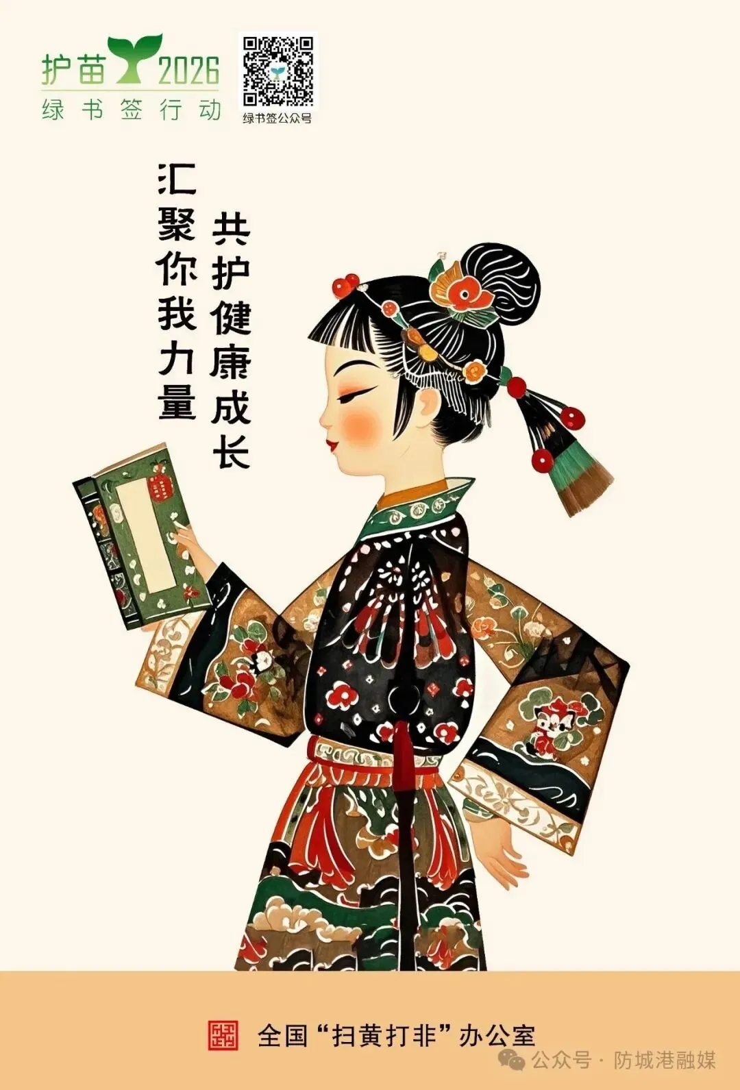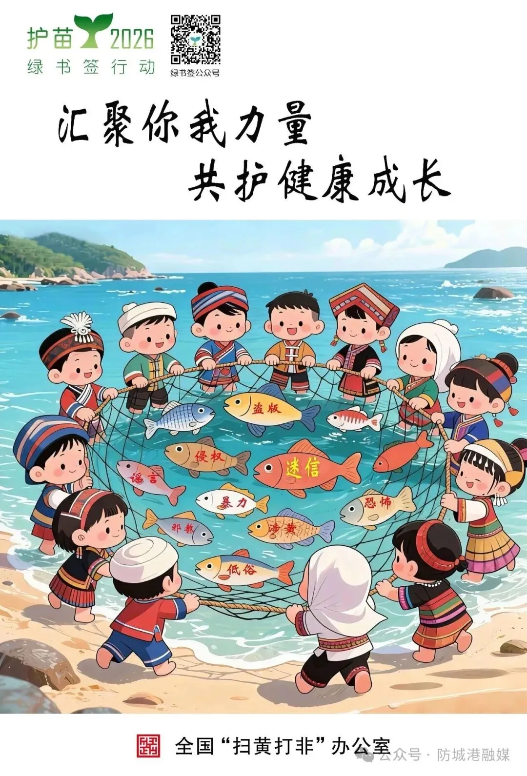 为持续推进“护苗”专项行动,增强“绿书签行动”传播力、影响力,引导广大青少年绿色阅读、文明上网,自觉抵制有害出版物及信息,近期,防城港市新闻出版局在全市范围开展了2026年“绿书签行动”海报设计征集活动。活动自启动以来,社会各界踊跃参与,积极投稿。经综合评选,选出一等奖2名、二等奖3名、优秀奖4名,现予以公布。获奖作品紧扣“汇聚你我力量 共护健康成长”的主题,弘扬主旋律、传播正能量,兼具思想性、创新性、艺术性,有较好的教育启发意义。
