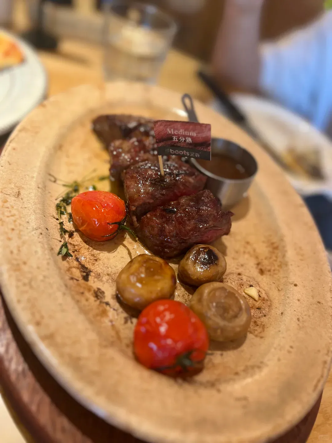 店内环境及卫生:美式露营风装修,木质桌椅搭配绿植装饰,暖调灯光柔和不刺眼,随手一拍都很出片。卫生管理规范,后厨明厨亮灶,操作流程公开可见;食材新鲜可查,牛排现切现煎,配料当天采购;餐具高温消毒,摆放整齐;地面、桌面干净整洁,无油污、无杂物,无油烟异味;卫生间专人值守,定时清理,干净无异味,细节拉满。