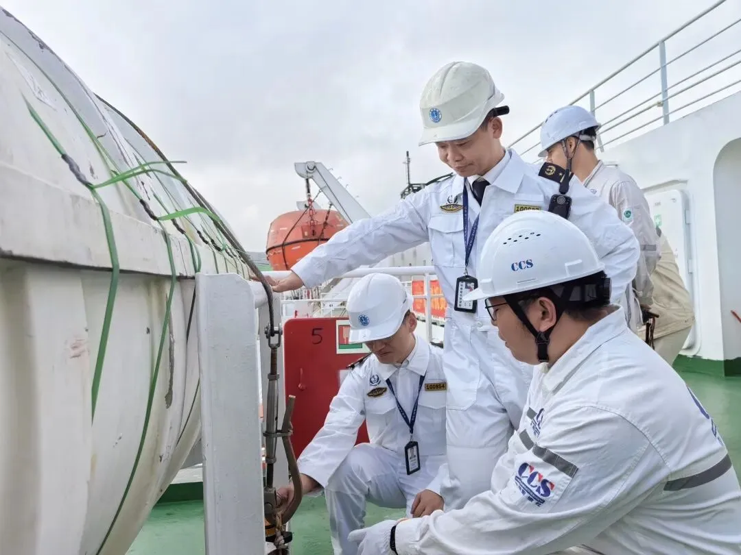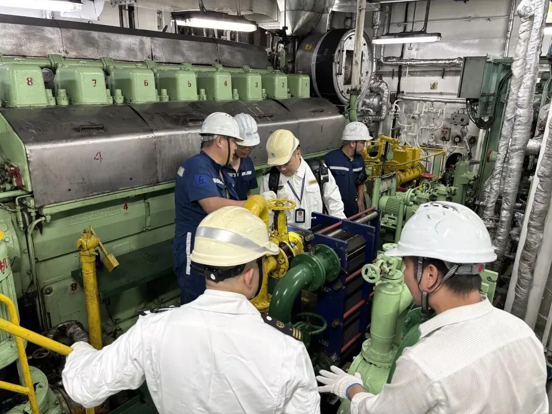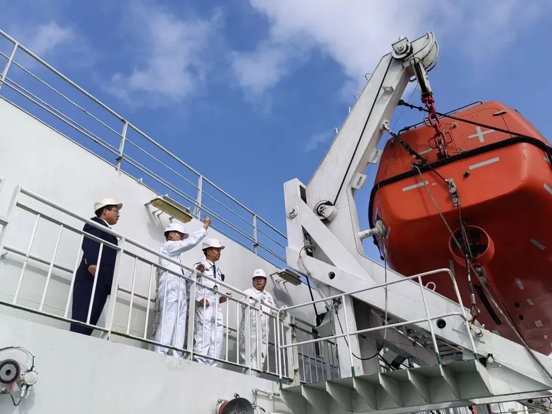 为确保这条海上动脉安全高效运营,防城港海事部门高度重视,从首航筹备阶段便提前主动介入,精准服务,指导船方完善靠泊与应急方案,首航前组织航运企业和码头业主召开航前会议,细化首航保障措施。首靠当天,充分运用全要素水上“大交管”和智慧海事系统,统筹海巡艇和无人机等手段对船舶实施全过程动态护航。船舶靠泊后,海事执法人员联合船级社对船舶机电设备、消防救生等关键设施和船员操作开展检查,全面排查隐患,确保船舶设施设备安全,提升安全运营能力,筑牢安全底线。