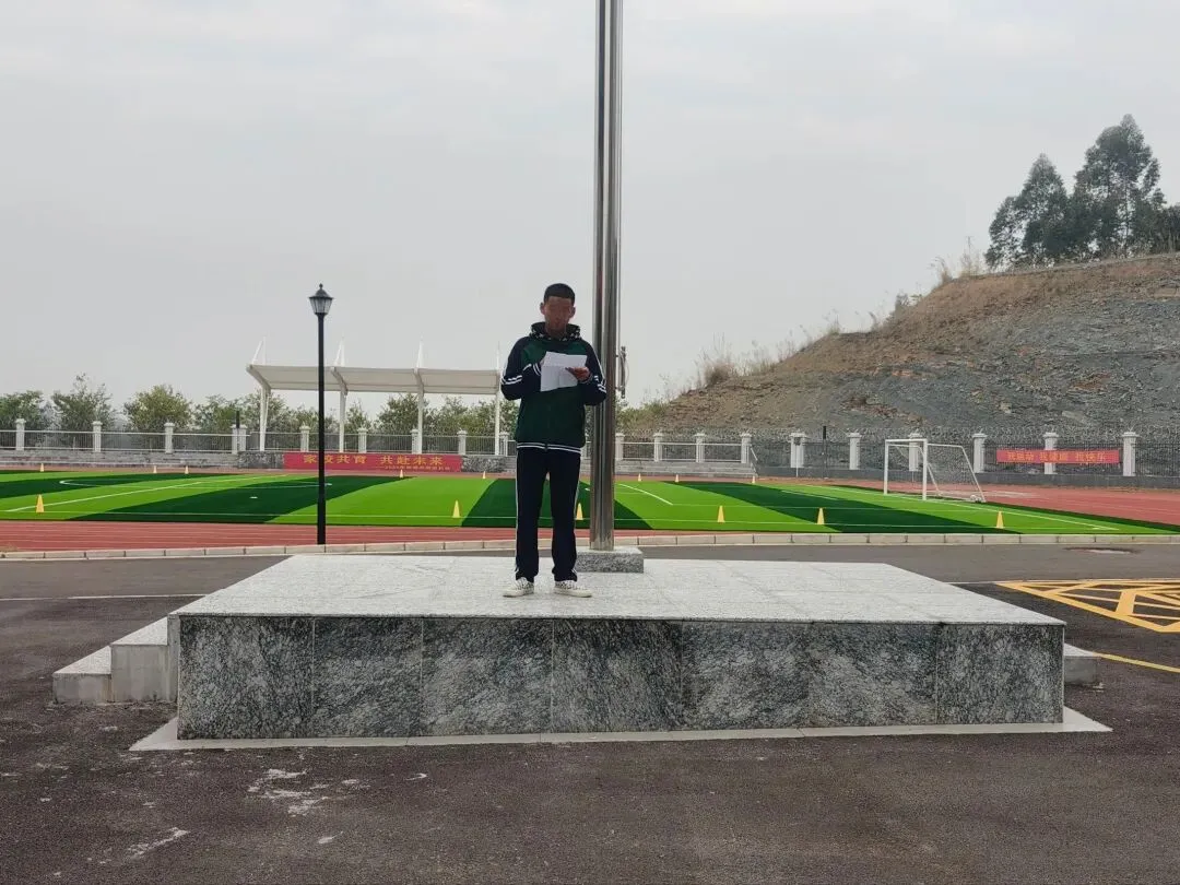 1月12日上午,全校师生在操场举行升旗仪式,学生代表以“文明安全出行,共建美好社会”为主题作国旗下演讲,学校领导为上周表现优秀的学生颁奖。