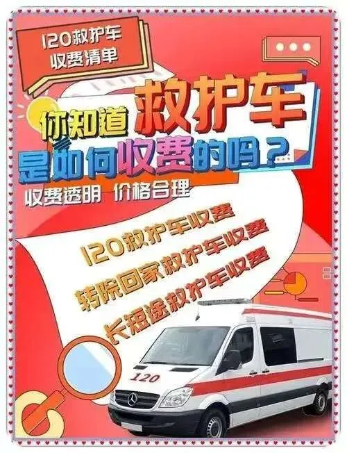 120救护车收费标准:市内短途(30公里内)基础费用500元起,含1名医护人员;长途跨省(500公里以上)按每公里6.5-10元计算,包含过路费及设备使用费,具体费用咨询24小时热线15088098120(←长按复制,微信同号)