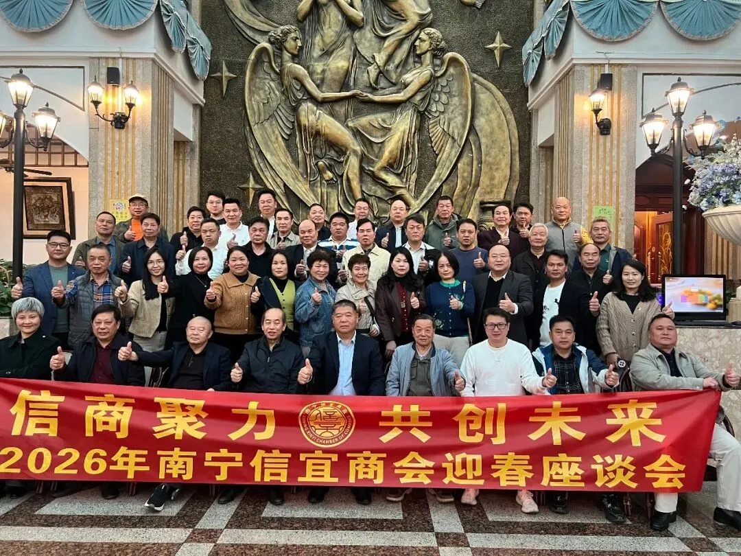 祥蛇摆尾辞旧岁,金马纳福迎新年。在新春佳节即将来临的美好时刻,2026年元月31日南宁信宜商会在南宁市邕江宾馆举办“信商聚力·共创未来”年会。商会全体会员、信宜籍在邕的老干部、老顾问、特约嘉宾等欢聚一堂,共同回顾过去一年的奋斗历程,展望未来美好的发展蓝图。