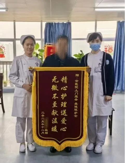 经过15次风雨无阻的上门护理,陈奶奶的创面完全愈合。欣喜的家属送上一面印着“上门施妙手 仁心抚患忧”的锦旗,向周琳表达由衷感谢。这面鲜艳的锦旗,也是群众对“网约护士”专业素养与医者仁心的褒奖。