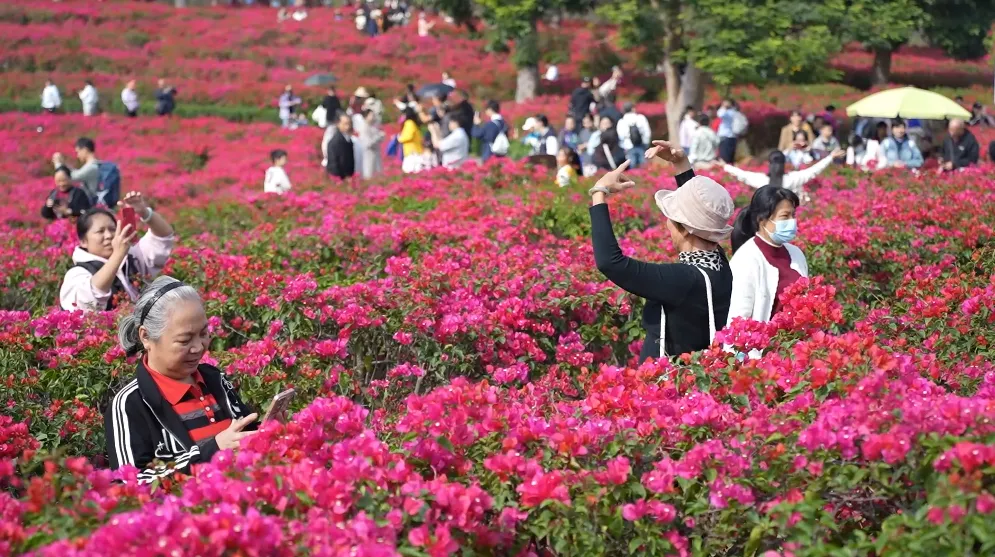 青秀山拥有9000多种植物,真正做到“四季花不断”。这一季绚烂的红色花海,下一季可能就变成金黄风铃。有趣的是,连“花”都会和你捉迷藏——艳丽的叶子花,红色部分是叶,中间小小的才是花。正如歌中所唱:“花的心,藏在蕊中”,这里的浪漫总在不经意间。