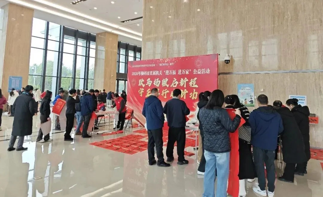 2026年2月3日至4日,由市委市直机关工委、市精神文明建设办公室、市文联主办的2026年柳州市直属机关“迎万福 进万家”公益活动相继在启元广场、三中路市委礼堂和文昌综合楼开展,20名书法家现场为机关干部职工写春联、送“福”字。