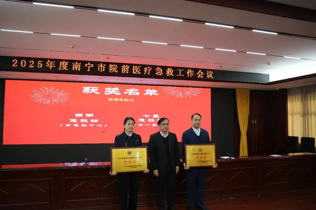 2026年2月3日,南宁市卫生健康委员会组织召开2025年度南宁市院前医疗急救工作会议。会议对全市149个急救站(点)进行了综合考评。其中,南宁急救医疗中心南湖急救站表现突出,获评“2025年度南宁市院前急救工作优秀奖”。