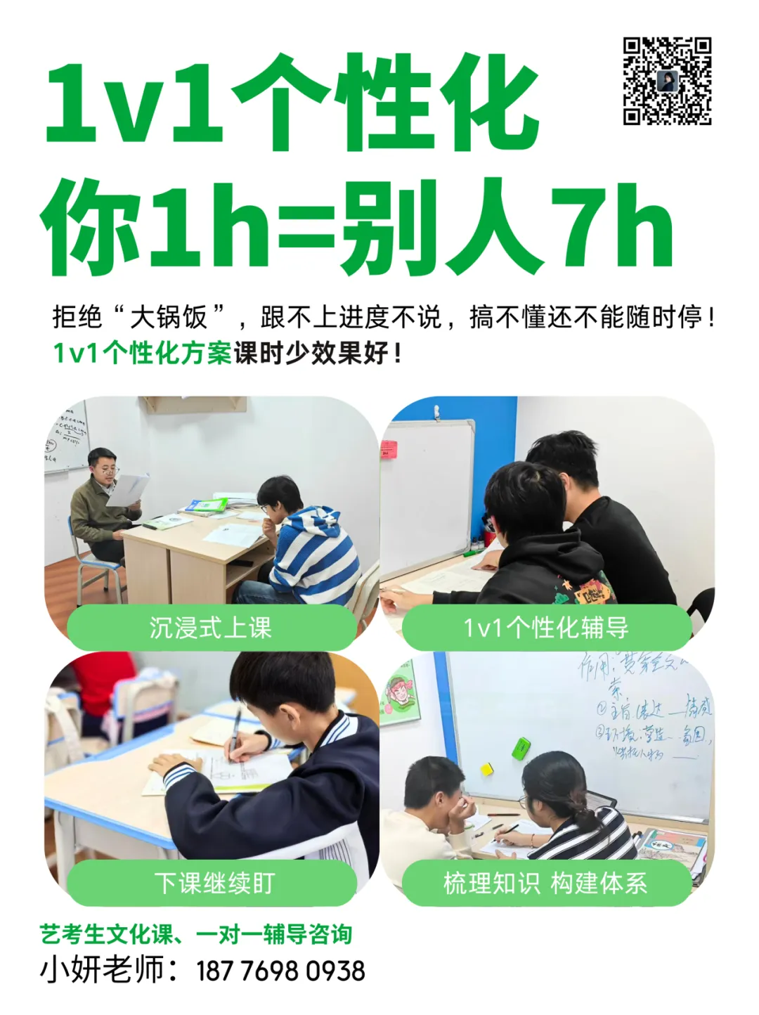 关注方法,更关注状态我们的老师不仅教知识,更调整学习状态。很多孩子成绩提升,往往始于一次“原来我能学会”的信心突破。