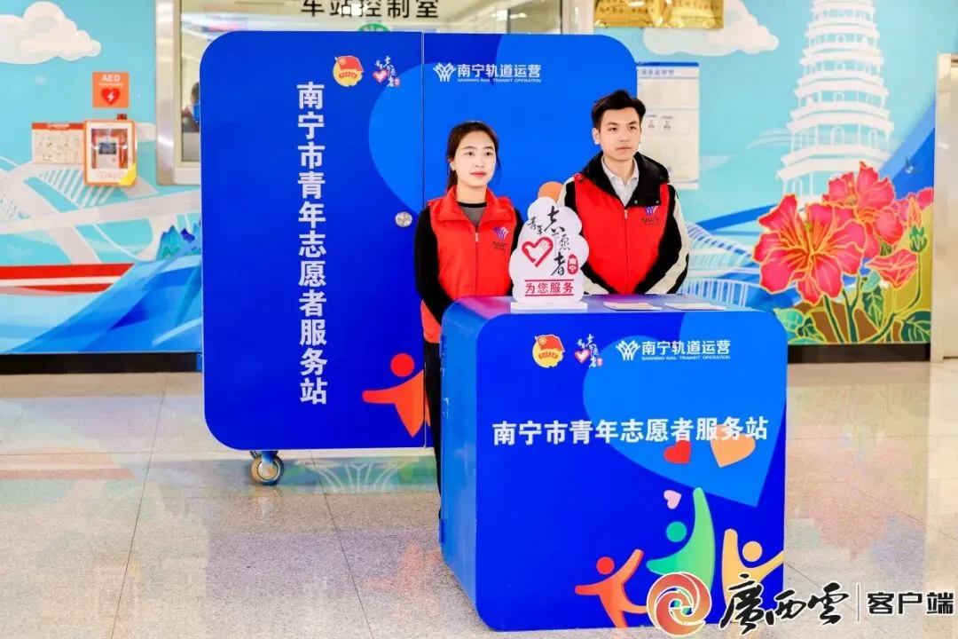 2月2日是2026年春运第一天,南宁地铁4号线体育中心西站内,一个全新升级的青年志愿服务示范站正式启用。该站由共青团南宁市委与南宁轨道交通投资集团联合打造,旨在精准对接春运出行及前往广西体育中心观看大型文体活动乘客的需求,以“青春暖愈阵地”的形式提供细致服务。