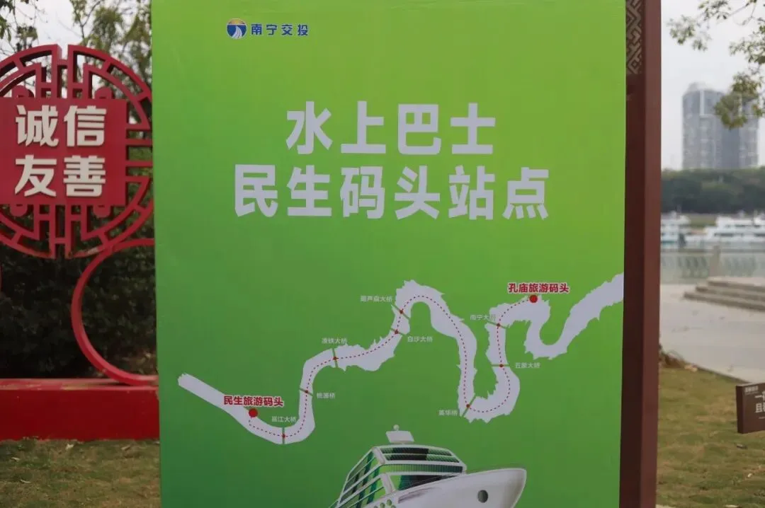 03 实用指南:如何搭乘水上巴士对于想体验的市民游客,以下信息或许有帮助:航线:目前开通的是“民生码头—孔庙码头”往返航线,单程航行约75分钟。班次:每日2班双向对开。民生码头发船:8:30、14:30孔庙码头发船:10:30、16:30票价:5元/人次沿途看点:畅游阁、冬泳亭、古城墙、南宁大桥、广西文化艺术中心等南宁地标。建议提前到达码头,每班船最多能乘坐约120名乘客。尤其是周末和节假日,可能会有较多市民尝鲜体验。