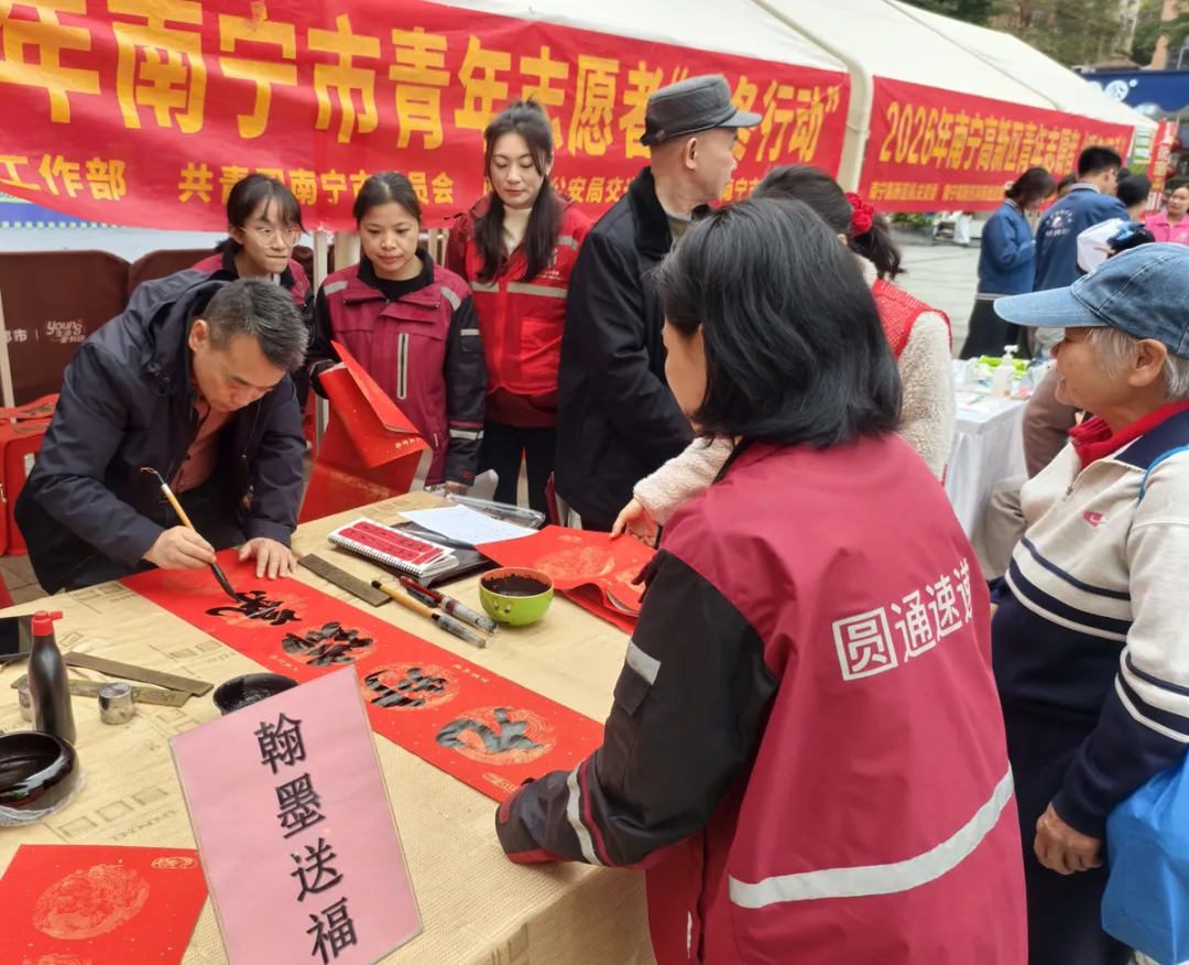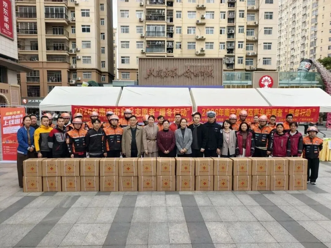 1月30日上午,南宁高新区华成都市广场上欢声笑语,暖意融融。一场专为快递员、外卖骑手、网约车司机等新就业群体量身打造的“暖冬行动”正在这里举行。此次活动由市委社会工作部、团市委、市公安局交管支队、市邮政管理局联合主办,南宁高新区“两新”工委、南宁高新区团工委、南宁市乐益行社会工作服务中心联合承办,旨在通过集中式、一站式的暖心服务,为城市里的“奔跑者”送去温暖,让他们在冬日里感受到南宁的城市关怀与尊重。