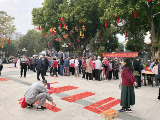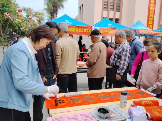 2月5日上午,为迎接新春佳节,营造欢乐祥和的节日氛围,切实为居民提供便捷服务,助力“百千万工程”,南宁社区精心策划并举办了“社区迎新春便民咨询活动暨春联送福进万家”活动。此次活动邀请了江门市中级人民法院、会城法庭、新会市场监督管理局、人民医院、派出所等十多个单位和多名书法家参与,如同一场温馨的“社区大集”,将便民服务与新春祝福完美融合,受到居民们的热烈欢迎。