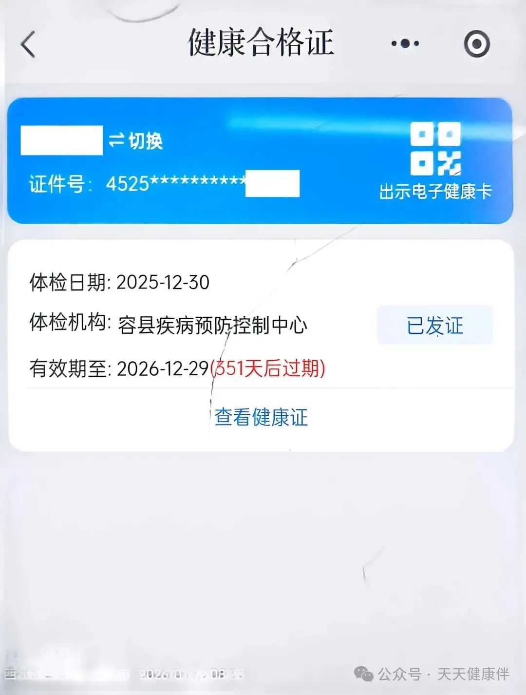 在健康合格证页面选择需要查看的健康证,点击