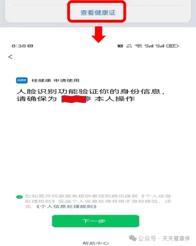 “查看健康证”进入人脸识别认证页面。