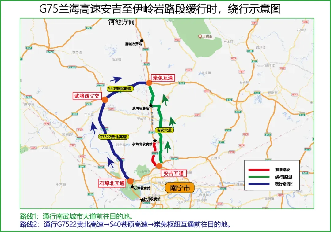 三、G75兰海高速府城至武鸣(岽免枢纽互通)路段发生拥堵时: